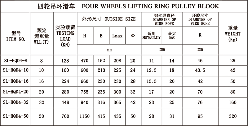 1、吊钩特点:优质合金钢模锻而成,3倍安全系数。 2、滑轮:铸铁滑轮、铸钢滑轮、热轧滑轮。 3、滑轮套芯:复合耐磨铜套、纯铜套、滚珠轴承、滚针轴承。 4、其他吨位可以定做。