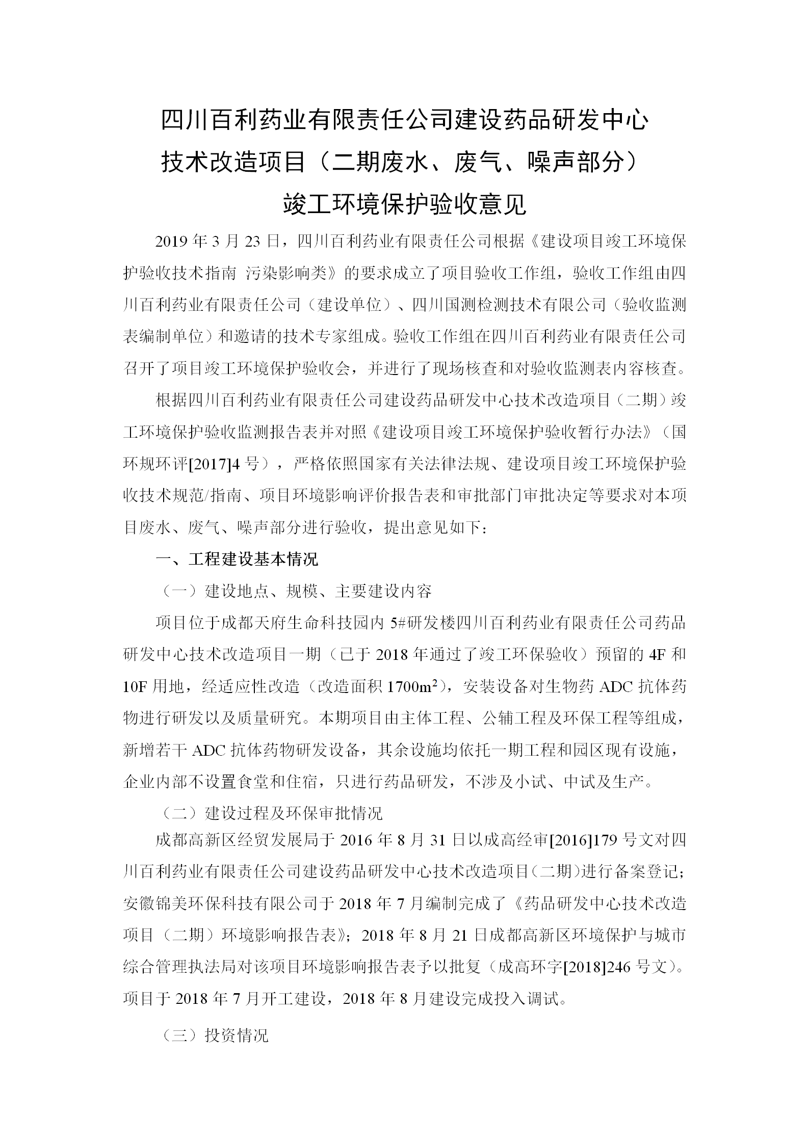 根据《国务院关于建设项目竣工环境保护管理条例的决定》以及环保部《建设项目竣工环境保护验收暂行办法》的公告(国环规环评[2017]4号)现将《四川MK官方网页版-MK(中国)有限责任公司药品研发中心技术改造项目(二期)竣工环保验收监测报告》及验收意见公示如下: